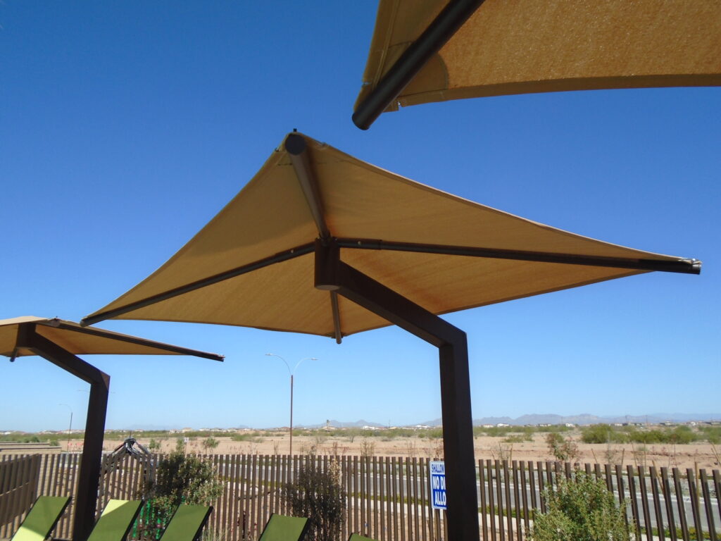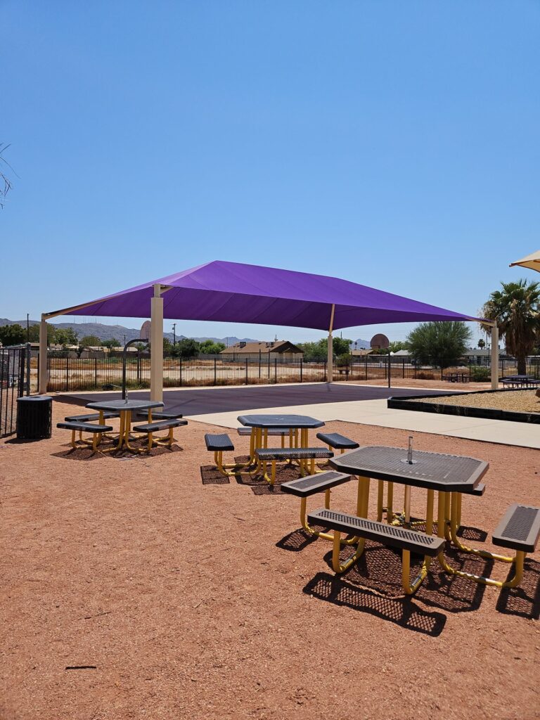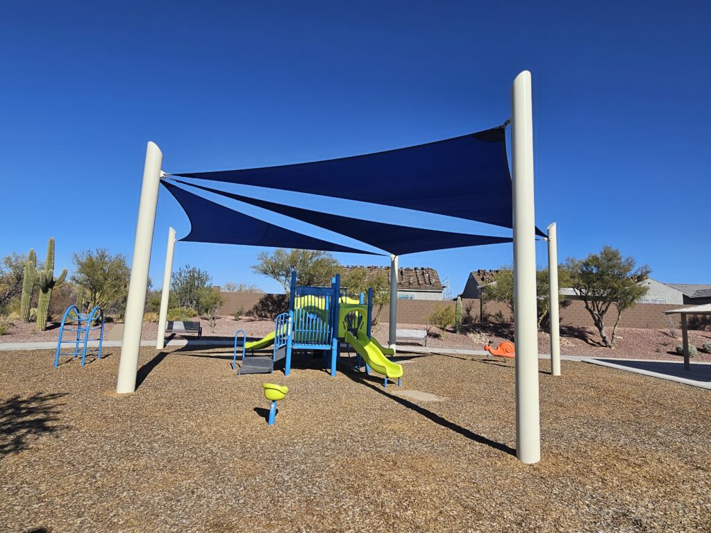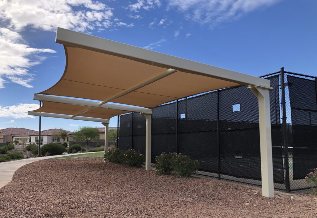 Total Shade manufactures and installs commercial shade structures engineered for Arizona’s extreme climate. From tensioned fabric sails and hip structures to custom architectural canopies, our products provide UV protection for parks, schools, HOAs, hospitality venues, and municipal facilities throughout the Southwest.