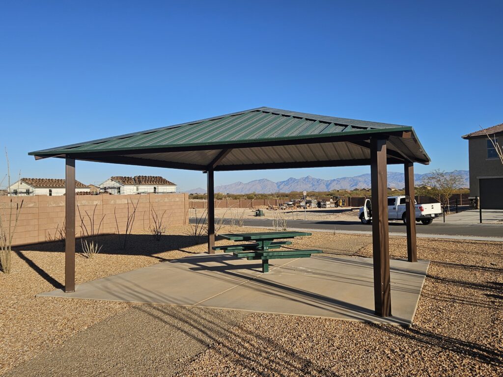 When the Arizona sun is relentless, a ramada is the definitive answer. Unlike pergolas that only filter light or umbrellas that shift with the wind, a ramada delivers complete, permanent overhead protection – keeping visitors, students, staff, and outdoor investments shielded from the sun, heat, dust, and rain.